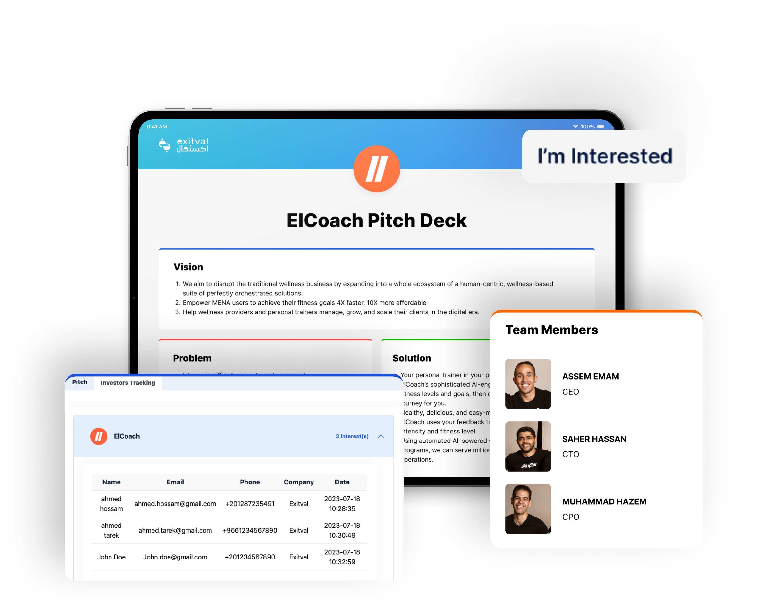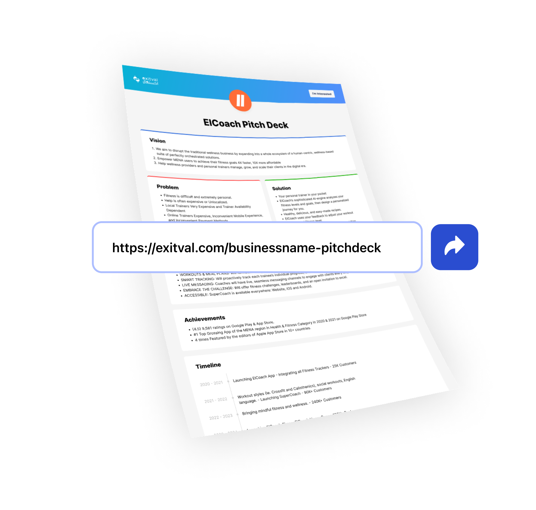 يساعدك العرض التقديمي المتقدم والقابل للتخصيص من اكسيتفال إلى نمو عملك وتعزيز عرضه على المستثمرين.